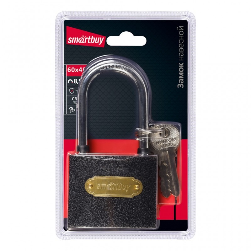Замок навесной SMARTBUY корпус 60*48 мм, удлиненная дужка d8.5 мм, 3 кл. (1/60)
