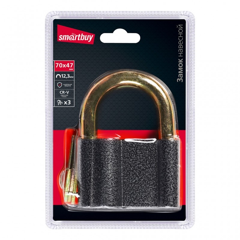 Замок навесной SMARTBUY корпус 70*47 мм, дужка d12.3 мм, 3 кл. (1/72)
