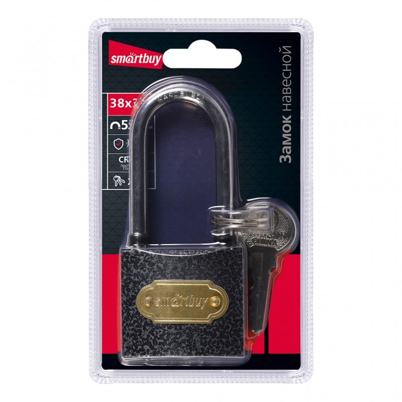 Замок навесной SMARTBUY корпус 38*33 мм, удлиненная дужка d5.5 мм, 3 кл. (1/240)