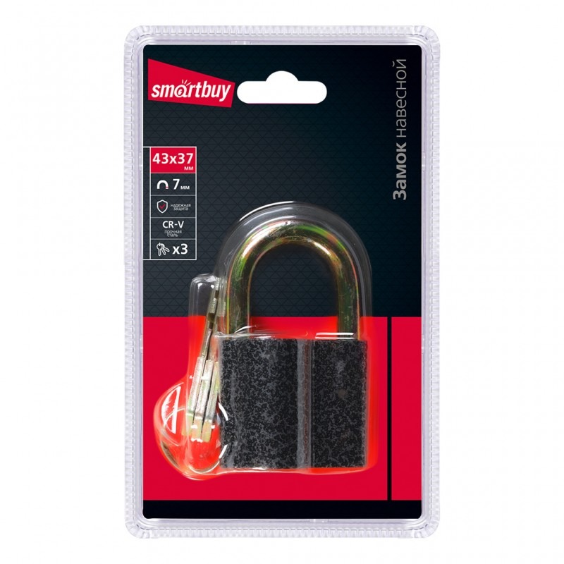 Замок навесной SMARTBUY корпус 43*27 мм, дужка d7 мм, 3 кл. (1/96)