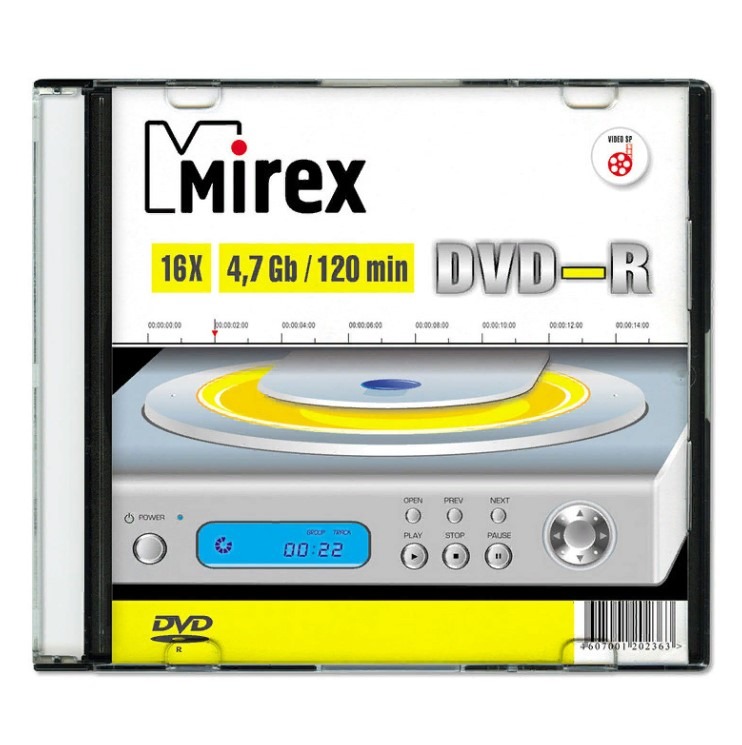 Диск MIREX DVD-R 16X 4,7GB Slim case 5 (5/200)