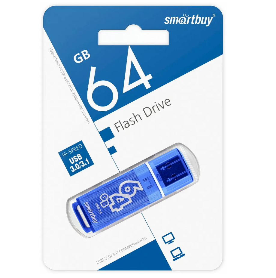 Описание Флеш-накопитель USB 3.0 64Gb Smart Buy Glossy series Dark (Blue)