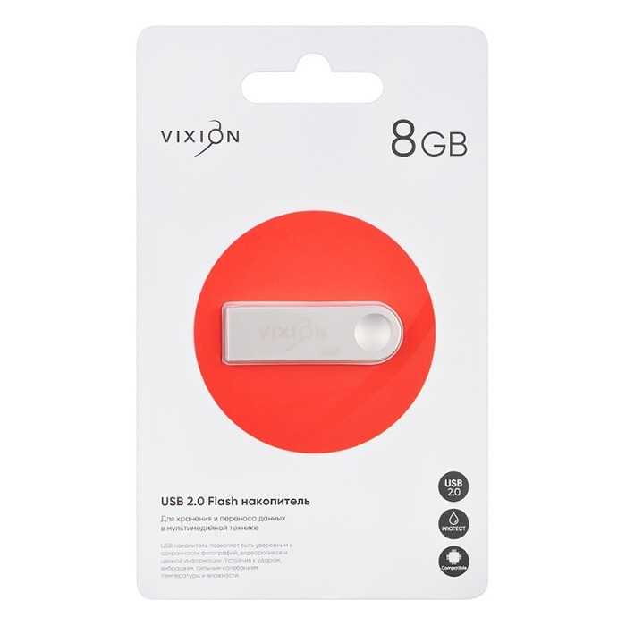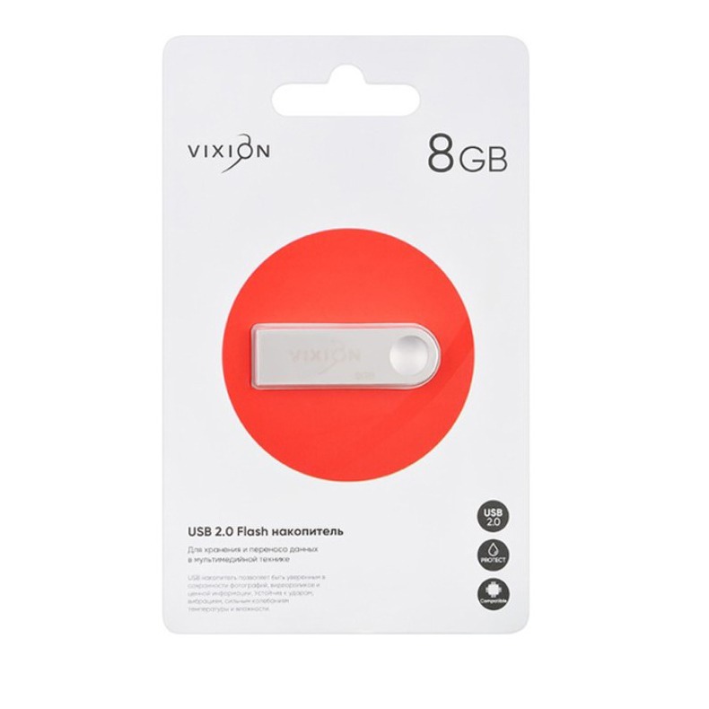 Накопитель USB Flash 08GB 2.0 VIXION Zinc Alloy (серебро)