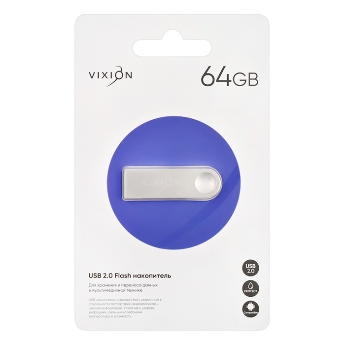 Накопитель USB Flash 64GB 2.0 VIXION Zinc Alloy (серебро)