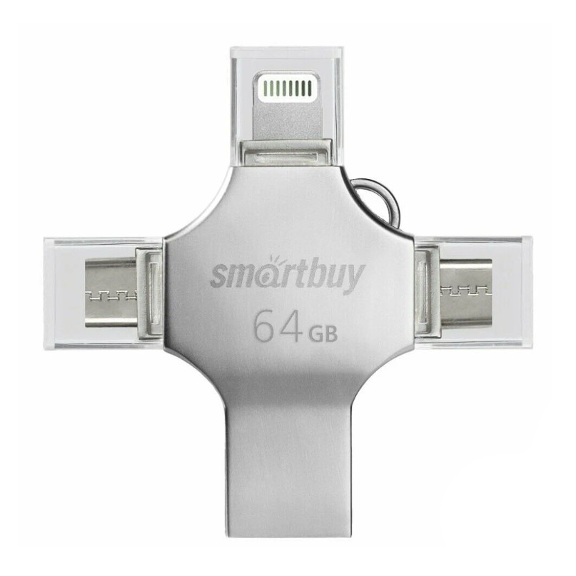 USB 3.0 64GB Smart Buy MC15 Metal Quad 4-in-1 (Lightning + USB Type-A + USB Type-C + micro USB) серебро металл