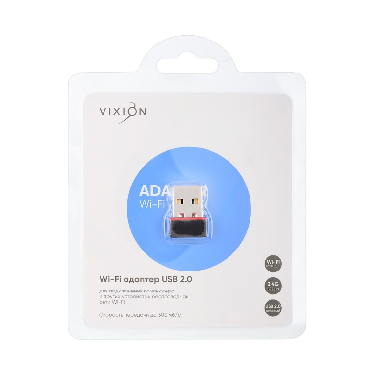 WI-FI приёмник VIXION подключается к USB-порту компьютера/ ноутбука и создает беспроводную сеть для периферийных устройств, с максимальной скоростью соединения 300 МБит/с.