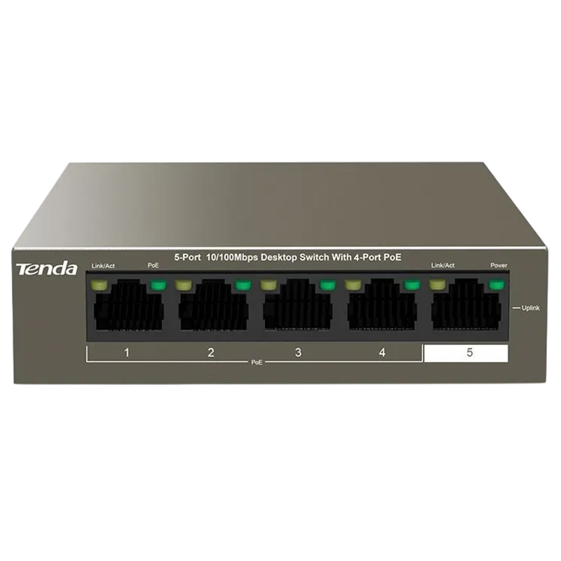 Коммутатор TENDA TEF1105P-4-63W, неуправляемый 5 портовый PoE, 5*10/100 Mbps Base-TX (1/10)