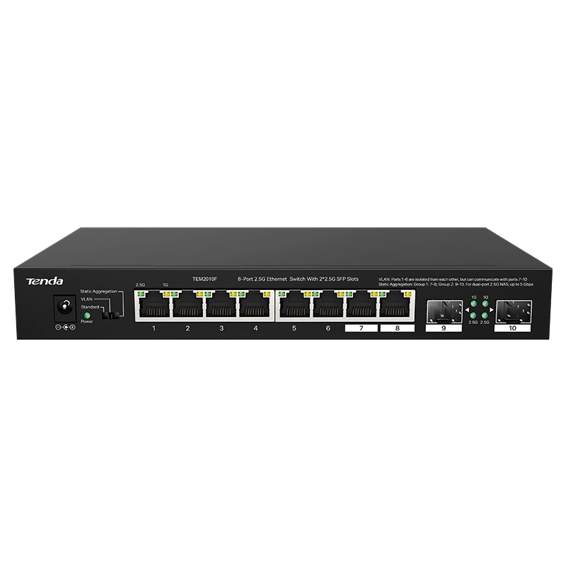 Коммутатор TENDA TEM2010F неуправляемый 2.5 гигабит, 8 порт+ порт 2/SFP, черный (1/10)