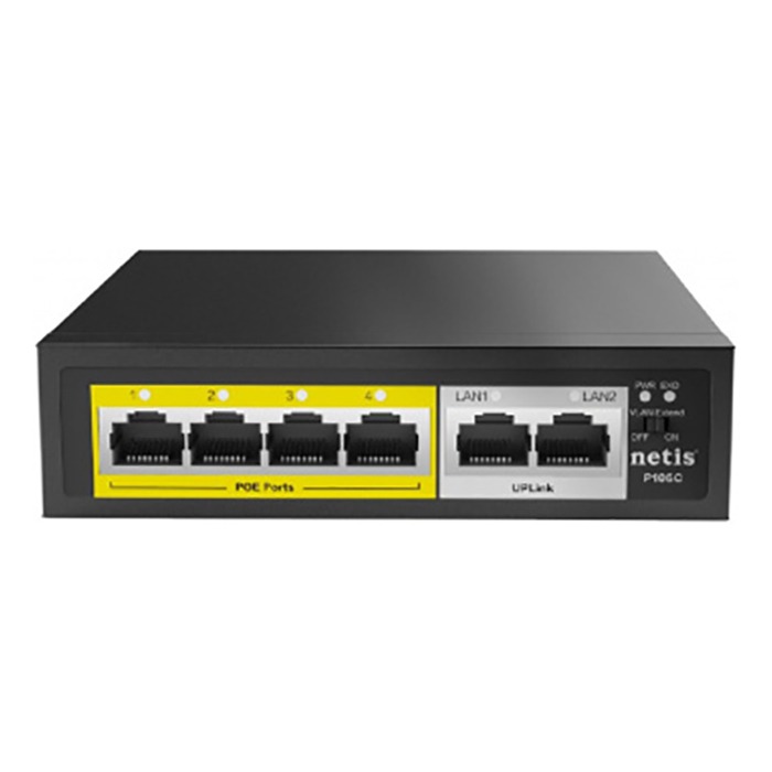 Коммутатор NETIS P106C 6x100Mb 4PoE+ 58W неуправляемый, функция PoE Watchdog (PoE авто перезагрузка) (1/20)