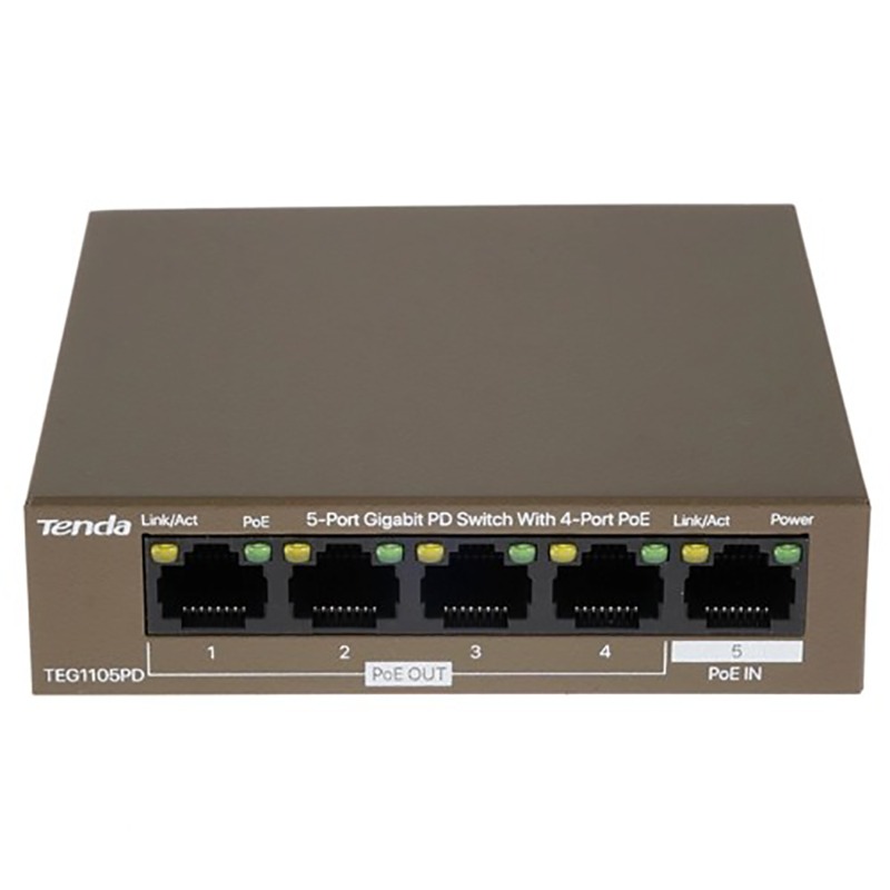 Коммутатор TENDA G1105PD, неуправляемый гигабитный (PSE и PD),PoE IN 10/100/1000 Мбит/с, PoE OUT10/100/1000 Мбит/с (1/40)