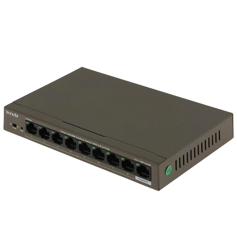 Коммутатор TENDA TEF1109P-8-63W 9x100Мбит/с 8PoE 58W неуправляемый
