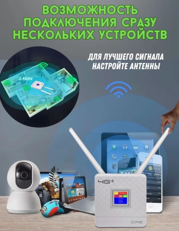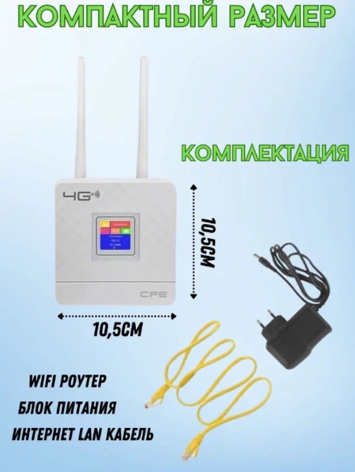 Wi-Fi роутер CPF903 LCD с сим картой LTE 4G, 2 антены 300Mbps (белый)