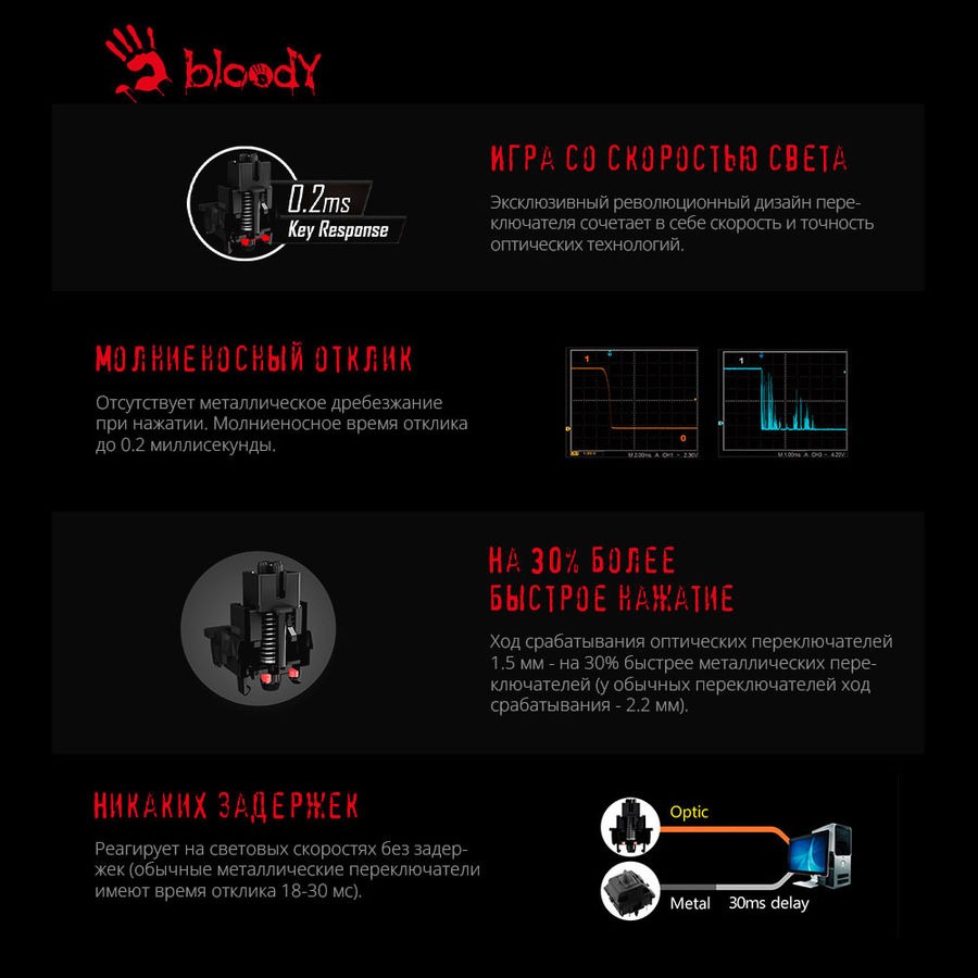 Особенности: молниеносный отклик, 3-цветная подсветка, 8 LK переключателей