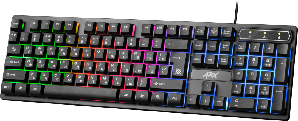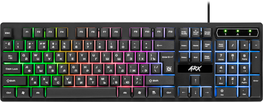 Описание Клавиатура Defender Arx GK-196L RU,проводная игровая, радужная подсветка (1/10)