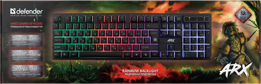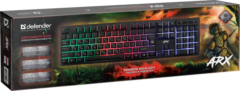 Клавиатура Defender Arx GK-196L RU,проводная игровая, радужная подсветка (1/10)
