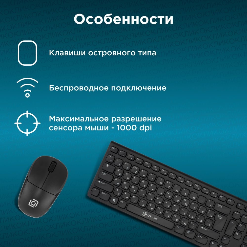 Беспроводной набор (клавиатура+мышь) ОКЛИК 220М чёрный [30.05.24], шт