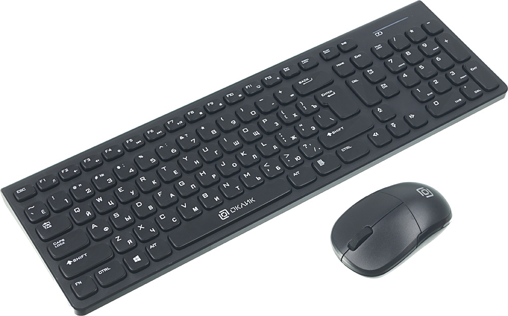 Набор Oklick 220M представляет собой беспроводную клавиатуру и мышь, которые станут верными помощниками в повседневных рабочих задачах.
