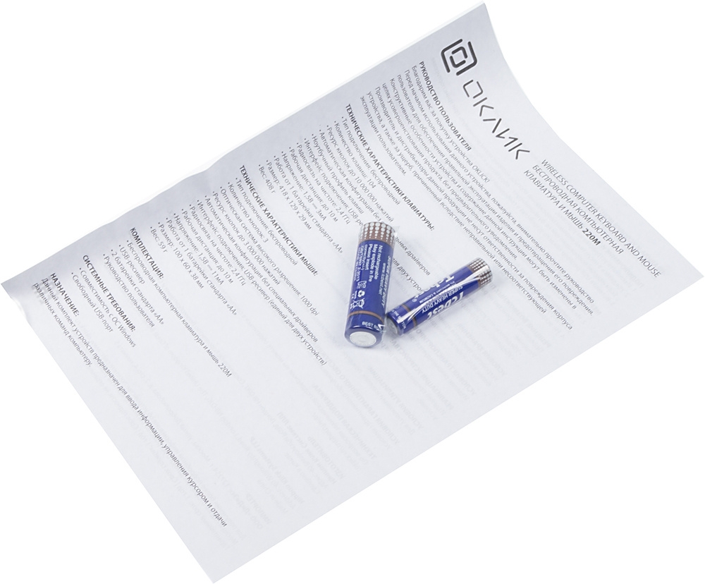 клавиатура, мышь, батарейки, документация