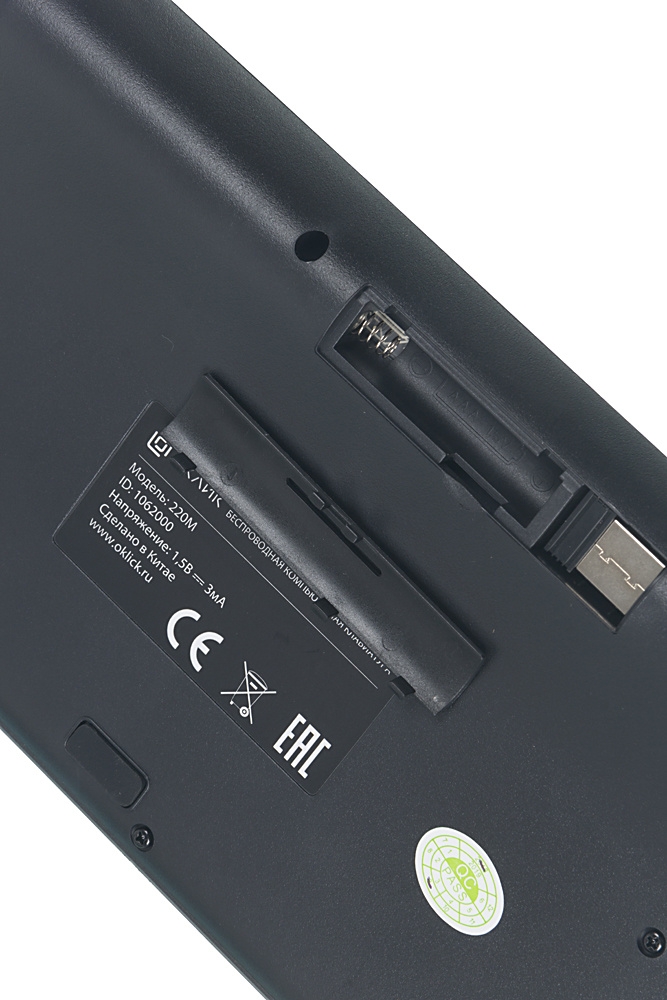 Набор Oklick 220M сделан в чёрном цвете. Буквы английского и русского языка на клавиатуре – белые.