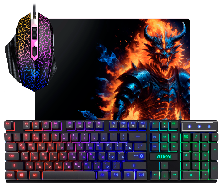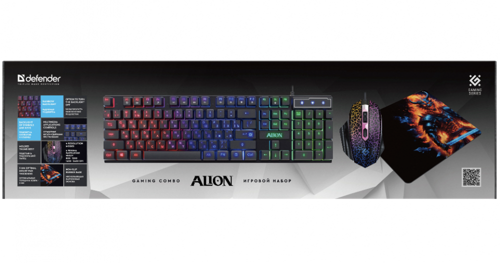 Описание Игровой набор DEFENDER Alion GS-987 RU,черн,радуж,мышь+клав+ковер