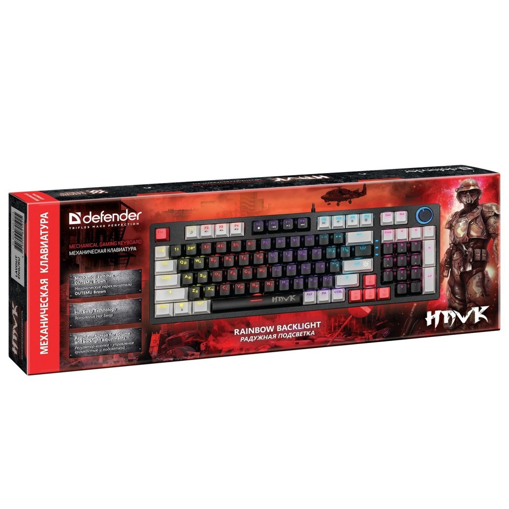 Клавиатура Defender Hawk GK-418 игровая механическая (97кн, OUTEMU Brown) (black) (238159)