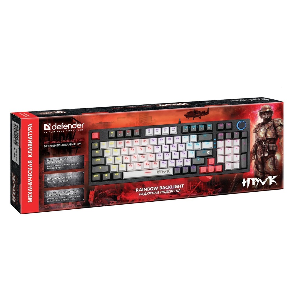 Клавиатура Defender Hawk GK-418 игровая механическая (97кн, OUTEMU Red) (black) (238160)