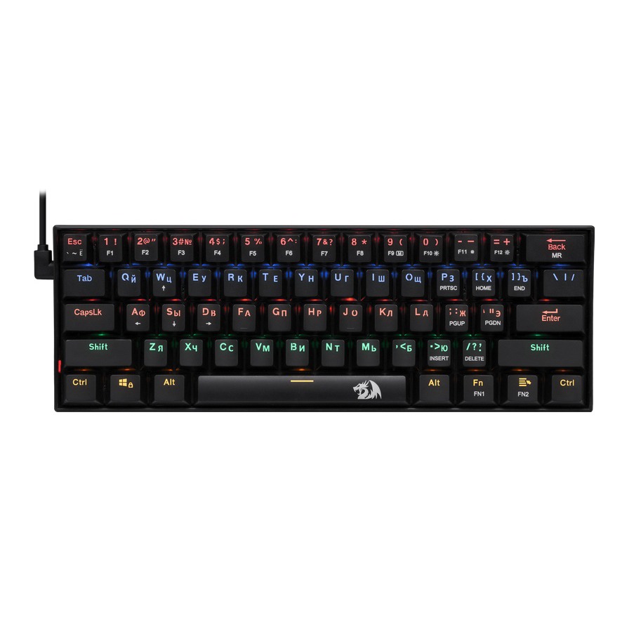 Клавиатура проводная игровая механическая REDRAGON Lakshmi RU, радужная, тихая, черная (1/20)