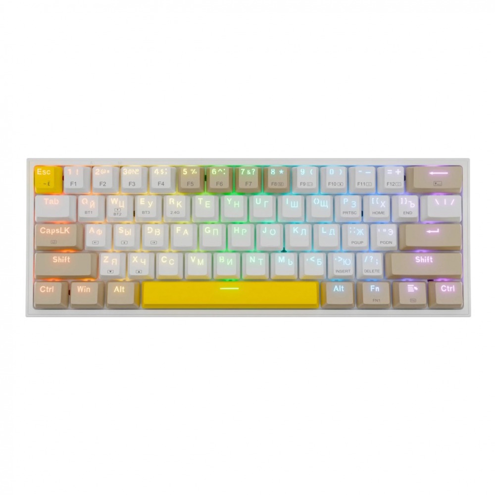 Клавиатура беспроводная игровая REDRAGON Fizz Pro RU, BT/2.4G , RGB, бел/жел/серый (1/10)