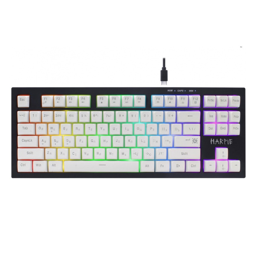 Клавиатура проводная игровая DEFENDER Harpie GK-401 RU, 87кн+FN, 1.5м, бело-черная (1/20)