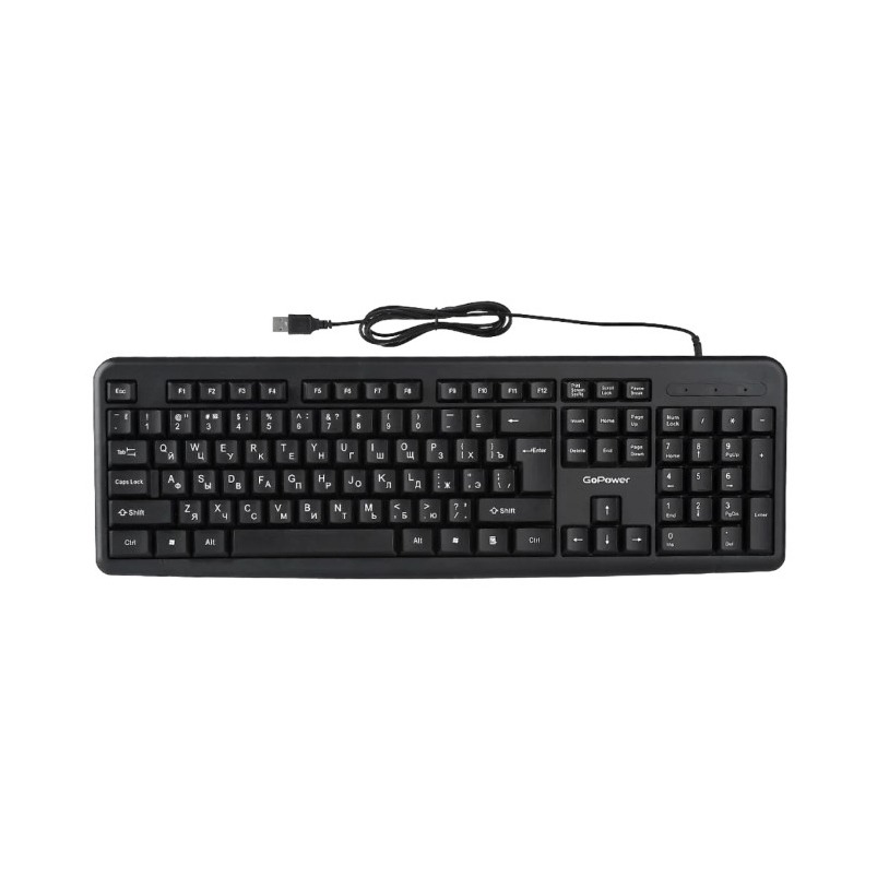 Клавиатура проводная GoPower GPK01 классическая USB 1.35м черный (1/20)