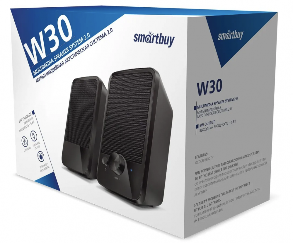 Активная система SmartBuy W30, 2.0, 6Вт, динамики 76мм, USB (SBA-4850)