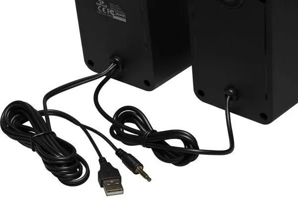 Колонки не требуют сетевого источника питания. Просто подключите колонки к USB-разъему компьютера и наслаждайтесь звуком. Данная модель оборудована интегрированной звуковой картой, поэтому не требует подключение к аудио разъему компьютера