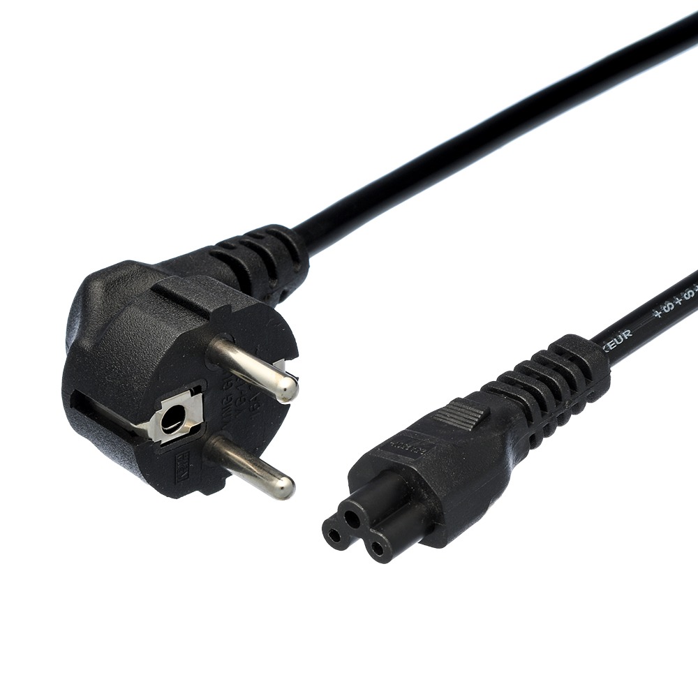 Шнур сетевой для питания БП ноутбука, евровилка - евроразъем С5, кабель 3x0,75 кв.мм 1,8м "GoPower"