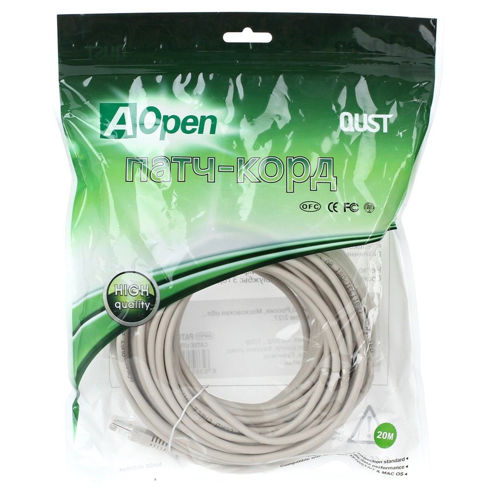Патч-корд литой AOPEN UTP кат. 5е, серый, 20 м. (1/15)