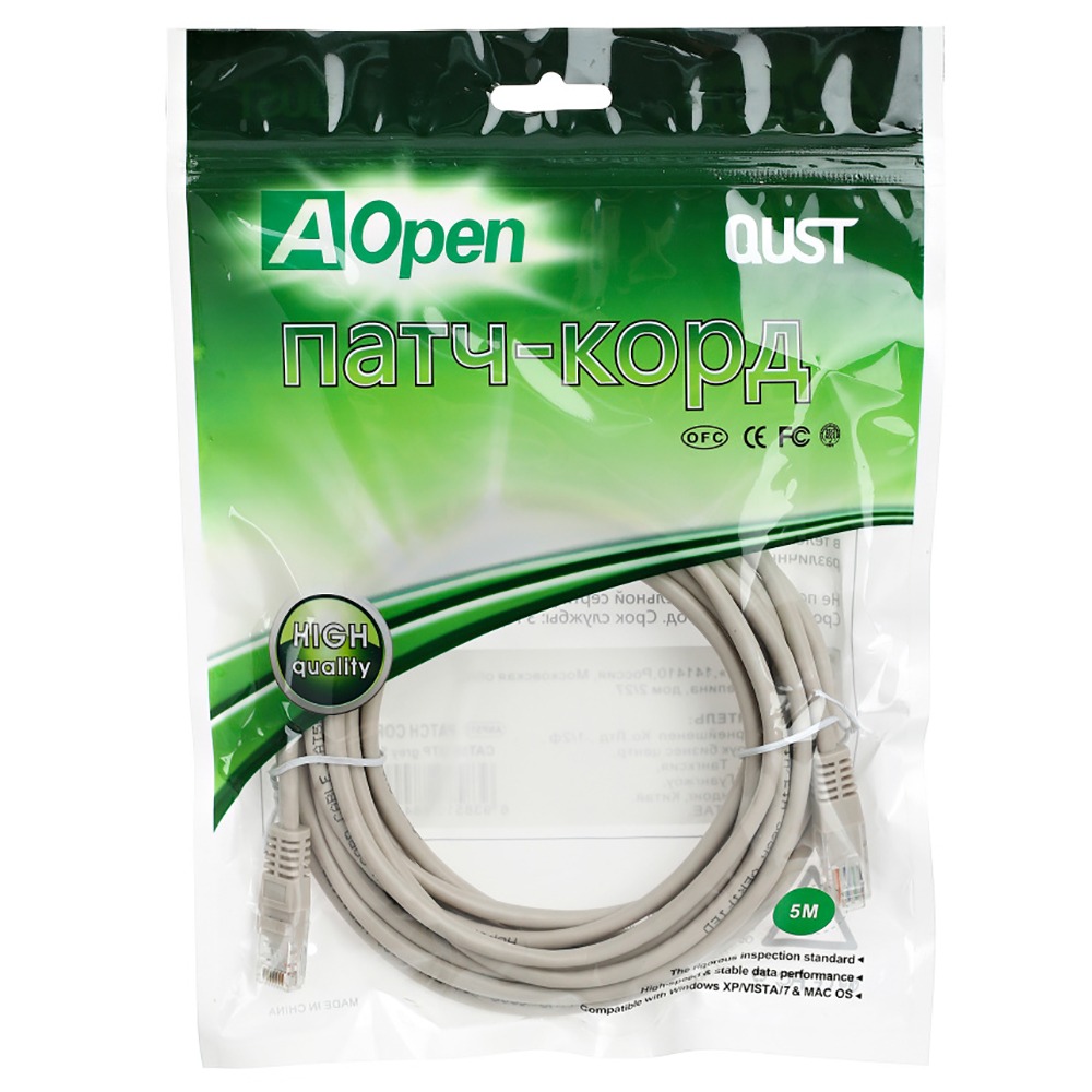 Патч-корд литой AOPEN UTP кат. 5е, серый, 5 м. (1/60)