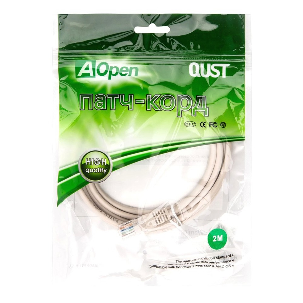 Патч-корд литой AOPEN UTP кат. 5е, серый, 2 м. (1/100)