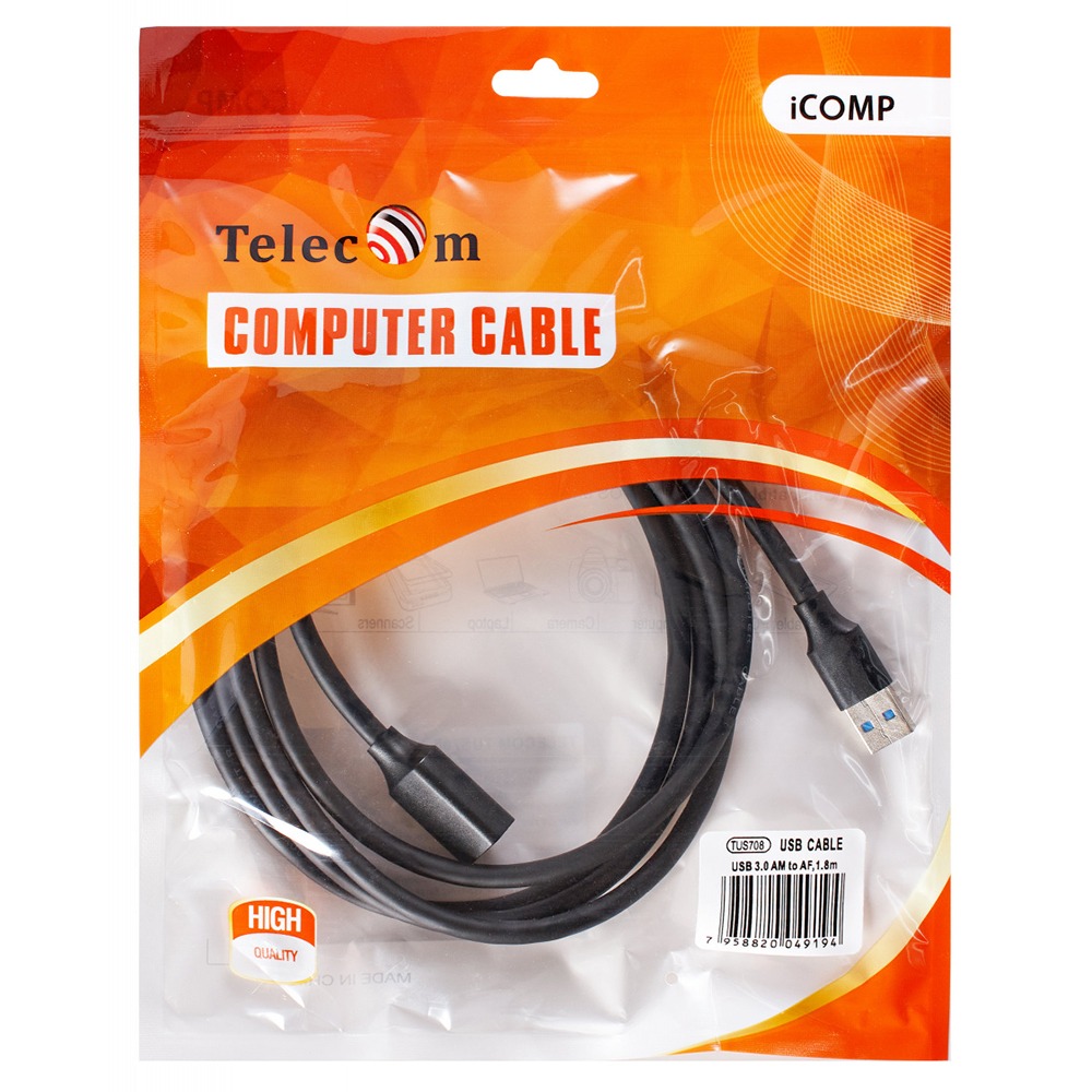 Кабель удлинительный USB 3.0 Am-Af 1.8m TELECOM черный (TUS708-1.8M) (1/75)