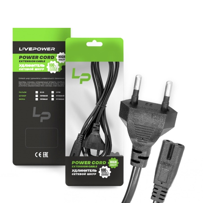 Кабель сетевой для бытовой техники LP C7 (C2) Premium (черный) 1м (A5443)