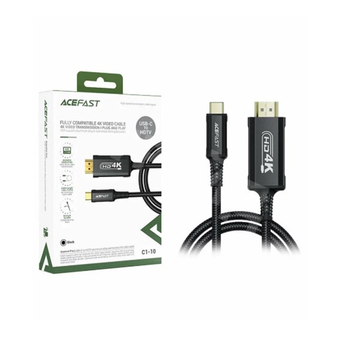 Кабель Type-C - HDMI Acefast C1-10 (ver 2.1, 4K/60 Hz, оплетка нейлон, 1.8 м) Черный