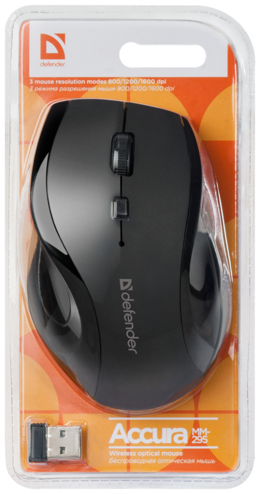 Мышь беспроводная Defender Accura MM-295 выполнена в черном корпусе и обладает компактными размерами, что делает ее очень удобной для управления компьютером. Модель использует светодиодный датчик, который работает в трех режимах – 1600 dpi, 800 dpi и 1200 dpi, что позволяет достичь максимальной продуктивности при выполнении любого вида работ. Корпус мыши выполнен таким образом, чтобы пользоваться устройством было удобно правой рукой.