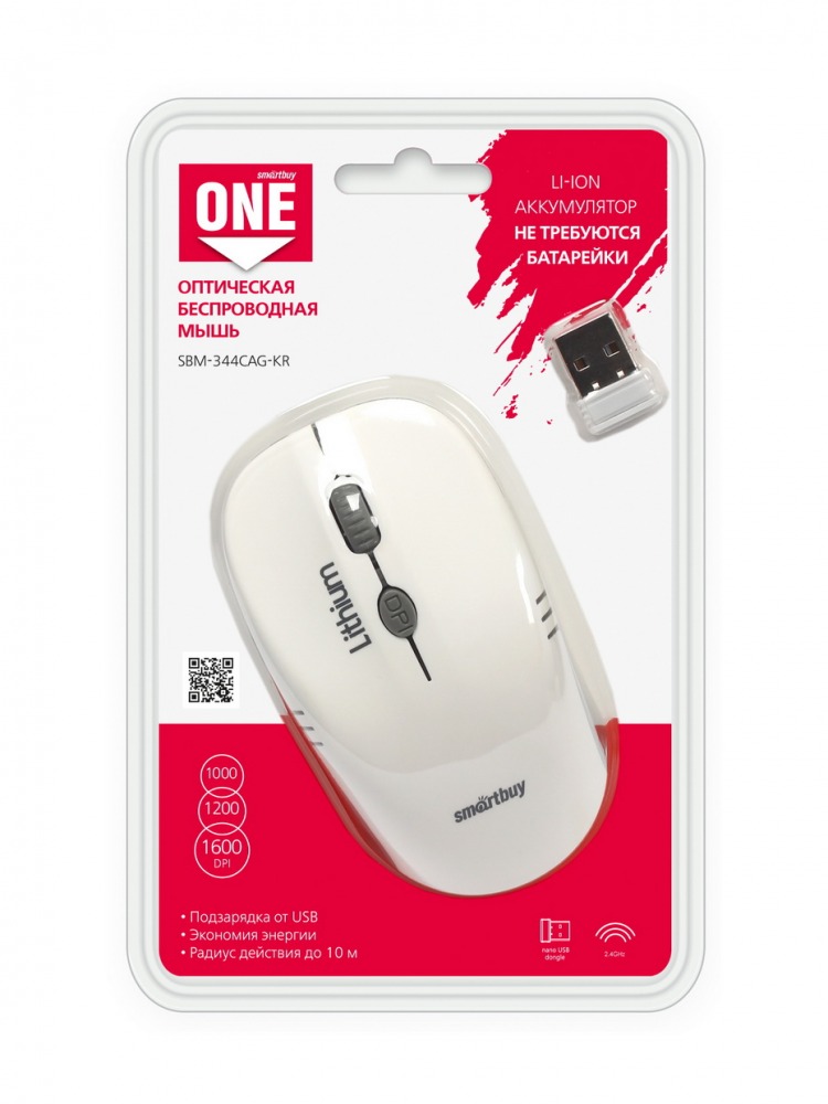 Описание Беспроводная мышь с зарядкой от USB SMARTBUY 344 бело-серая