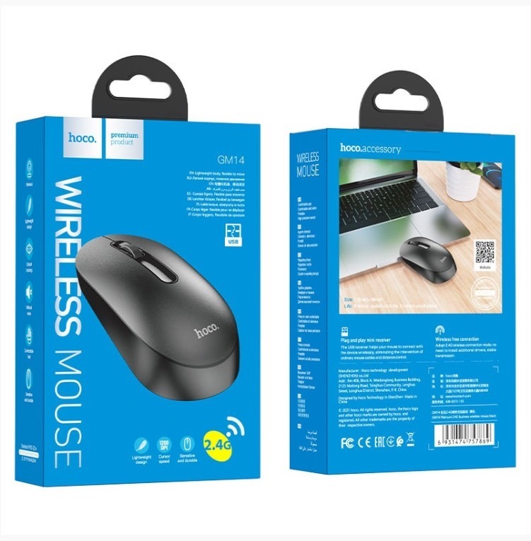 Мышь беспроводная HOCO GM14, USB, черный