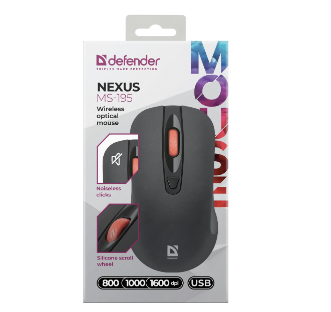Описание Мышь беспроводная DEFENDER Nexus MS-195, черный