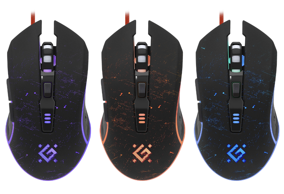 Удобная проводная геймерская мышь с радужной подсветкой. Данная модель имеет 6 режимов разрешения от 1200 до 7200 dpi. Также у мышки предусмотрены боковые кнопки "Вперед" и "Назад" и тефлоновые ножки для быстрого скольжения. Мышь поставляется в комплекте с ковриком.