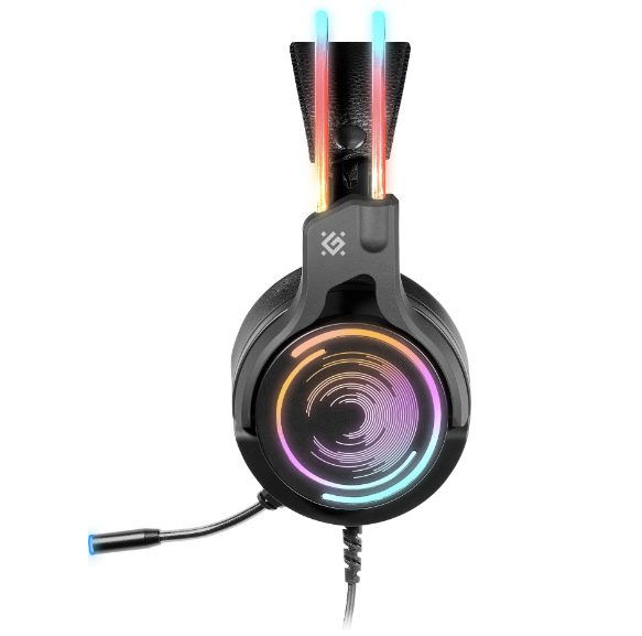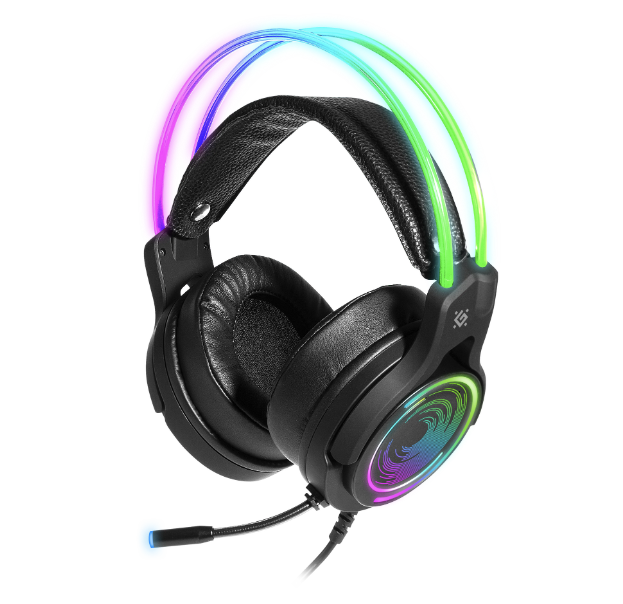 Стильная игровая гарнитура с RGB подсветкой корпуса и оголовья, виртуальным объемным звуком 7.1, комфортными амбушюрами из протеиновой пены и отличным качеством звука.