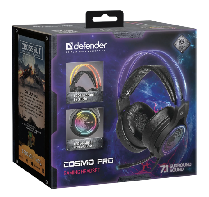 Особенности: объемный звук 7.1; пульсирующая 7-цветная подсветка; подарок от Crossout