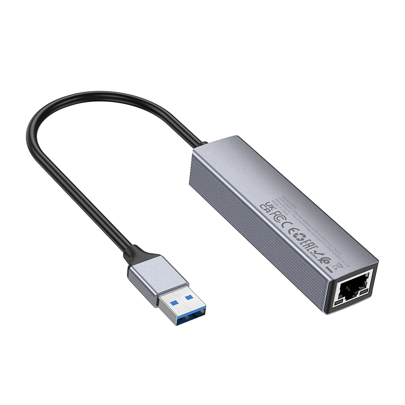 Адаптер-Хаб Hoco HB34 (USB to USB3.0*3+RJ45), серый