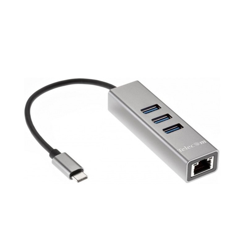 Переходник USB 3.1 Type-C(M)--> RJ-45+3*USB 3.0(f) Aluminum Shell VCOM