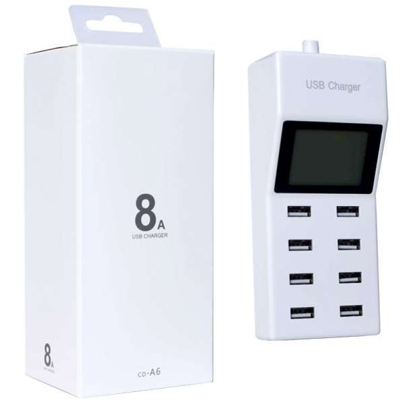 Сетевое зарядное устройство HUB-801 8USB Ports+LCD Fast Charger