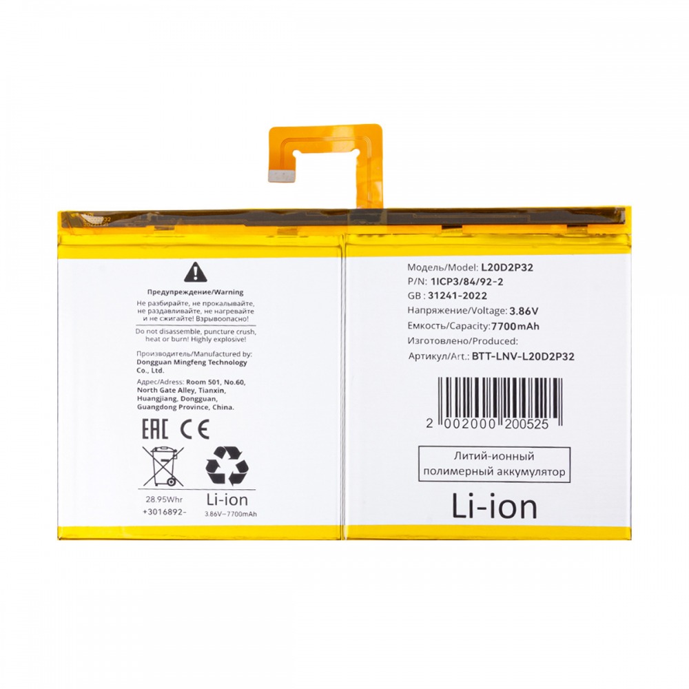 Аккумулятор для Lenovo Tab P11/P11 5G/P11 Plus/M10 Plus Gen 3 10.6"/Lenovo Xiaoxin Pad 10.61" (2022) TB-J606F/TB-J606L/TB-J607Z/TB-J616F/TB-J616X/TB-128FU/TB-128XU/TB-125FU (L20D2P32)